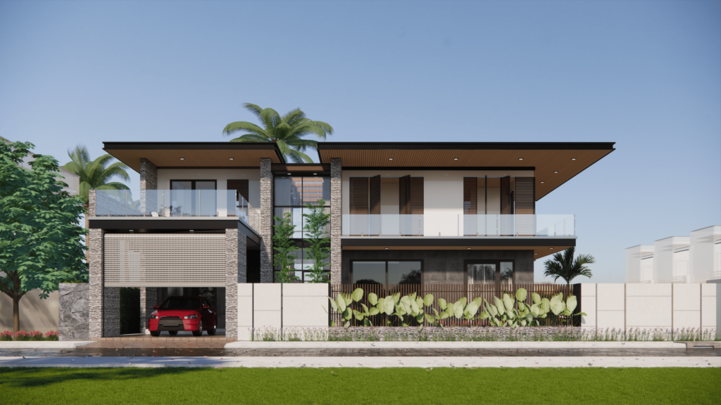 Desain Exterior Rumah 2 Lantai Konsep Industrial Minimalis
