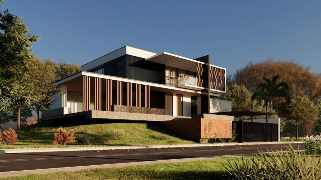Desain Exterior Rumah 2 Lantai Konsep Industrial Minimalis