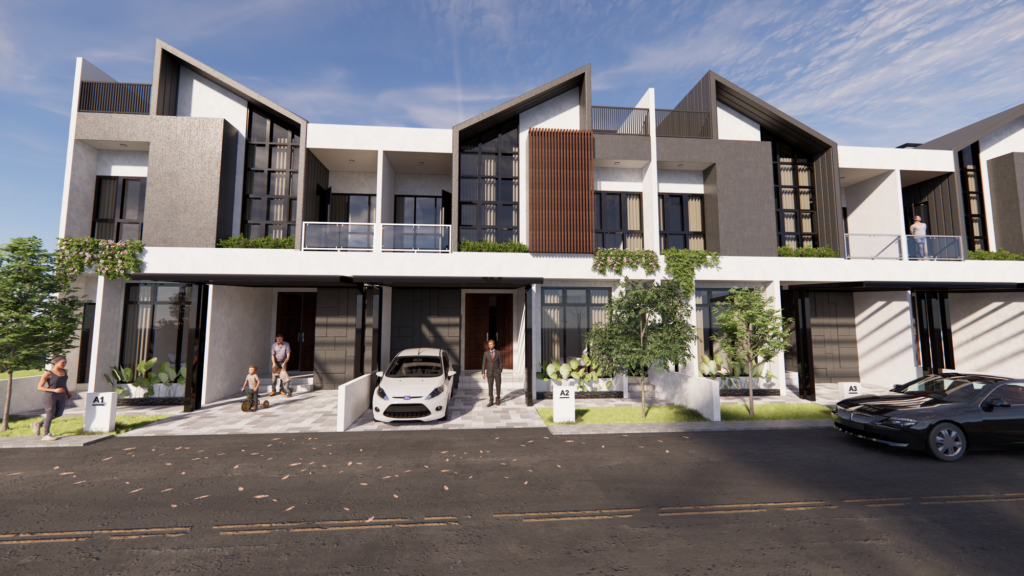 3D Visual Facade Buntown Residence dengan desain Scandinavian