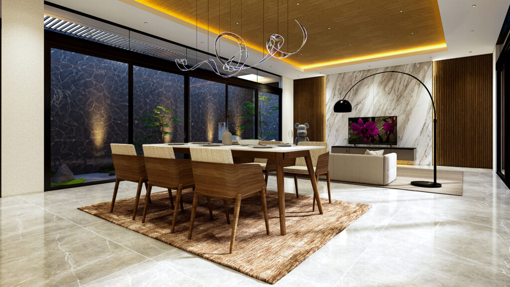 Desain Interior Living Room, Dining Room, and Kitchen