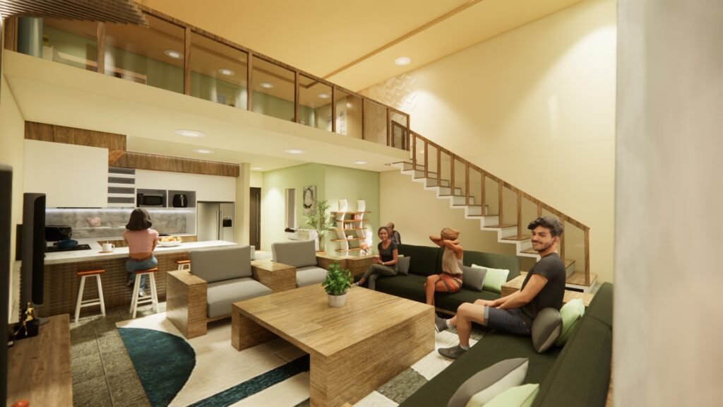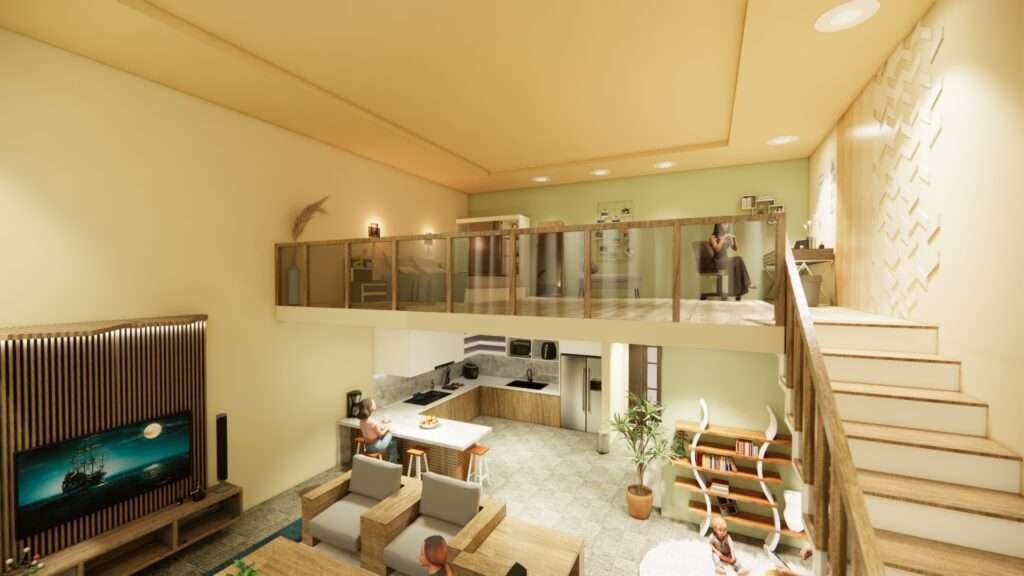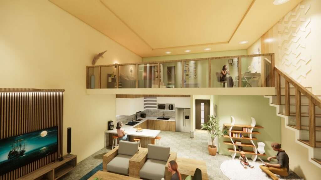 Pada project desain interior Cozy Mezzanine House ini saya ingin belajar menuangkan ide dan gambaran saya terkait rumah yang nyaman untuk keluarga/teman berkumpul, serta rumah tinggal yang nyaman bagi pemiliknya.