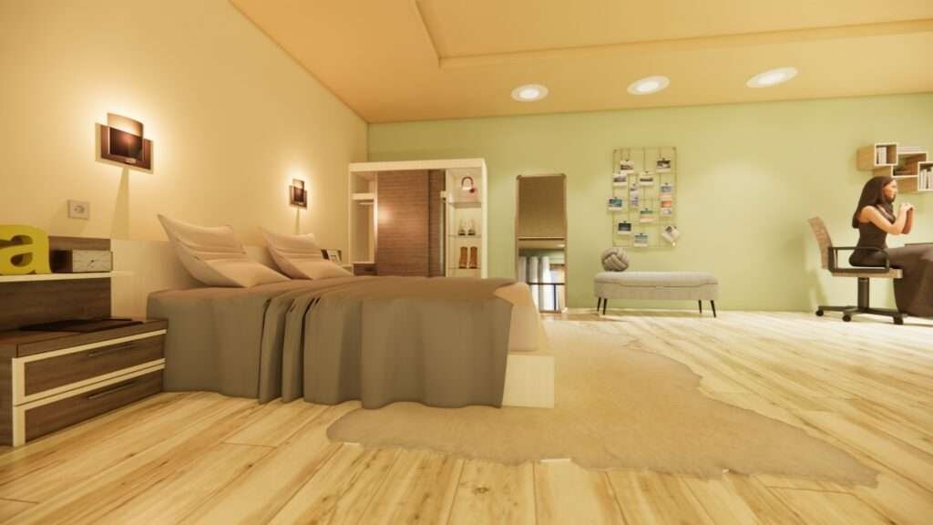 Model 3D rumah mezzanine tersebut awalnya dibuat untuk tugas kelas sketchup (web), namun masih dasarnya saja. Untuk enscape masterclass ini, saya mengubah beberapa material dan menambah detail dari model tersebut, serta belajar setting material untuk hasil render yang lebih realistis. Saya cukup puas dengan hasil tugas ini, meskipun tentunya masih banyak hal yang harus dikembangkan (termasuk pengetahuan saya terkait furniture dan lighting dan lain sebagainya) agar hasil desain dan render yang saya buat bisa menjadi lebih baik lagi.