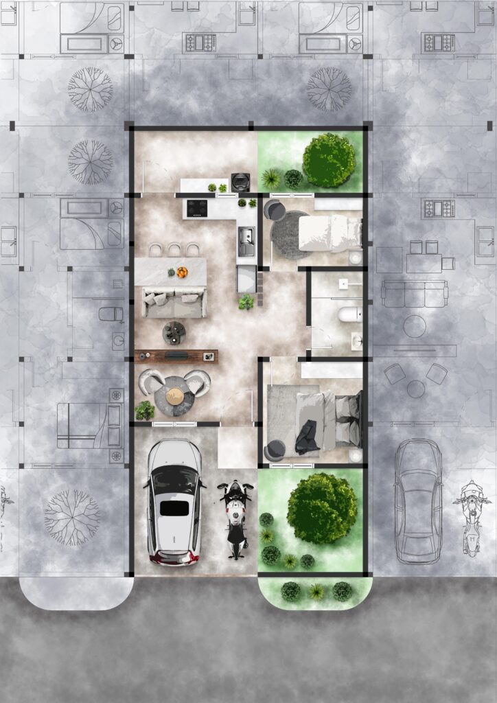 hasil denah rumah tinggal style watercolor dari pembelajaran zoom