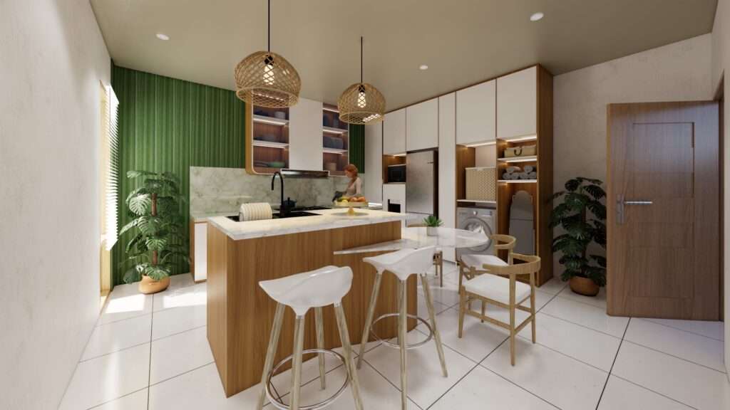 Desain Interior Dapur. Menerapkan konsep Skandinavia dan minimalis.
