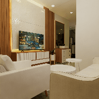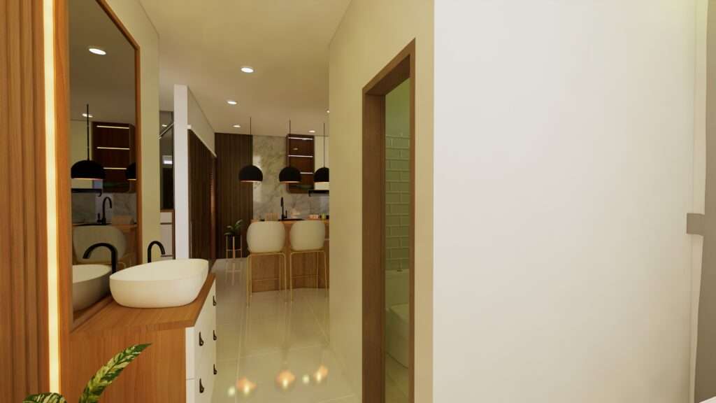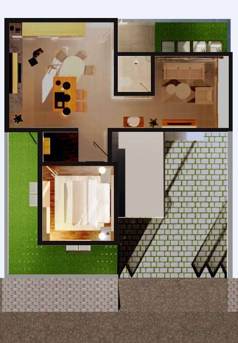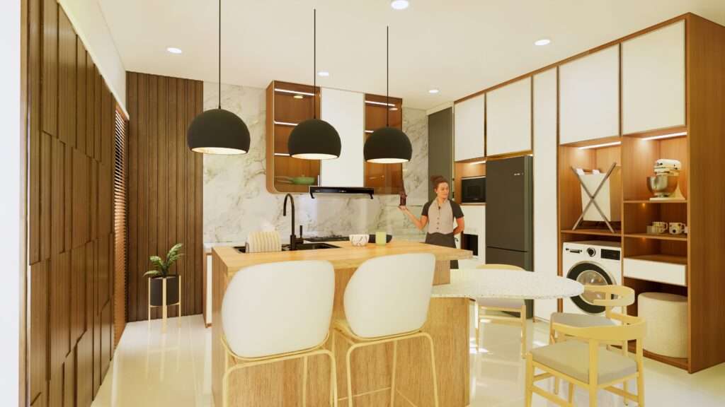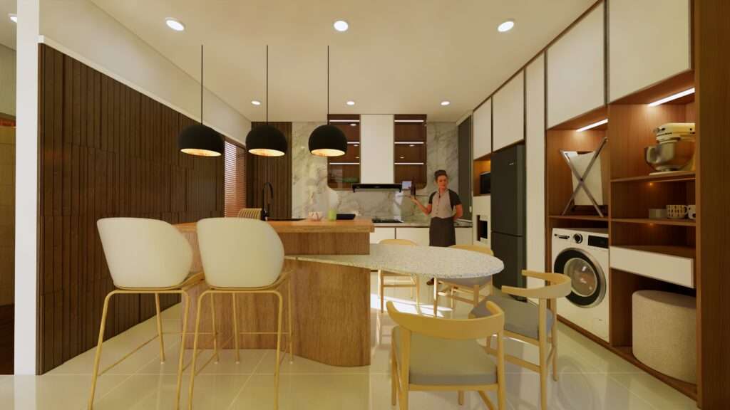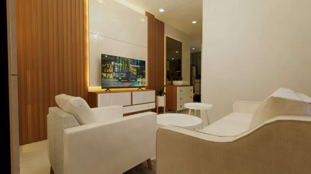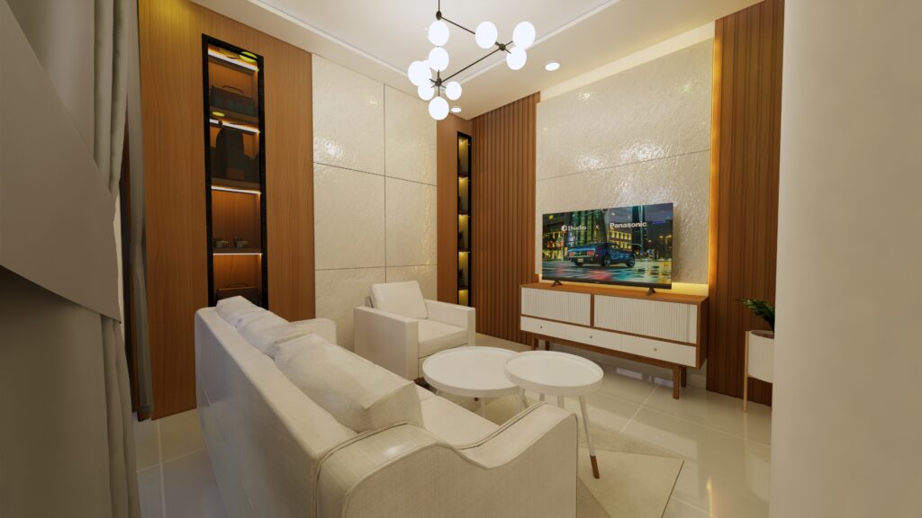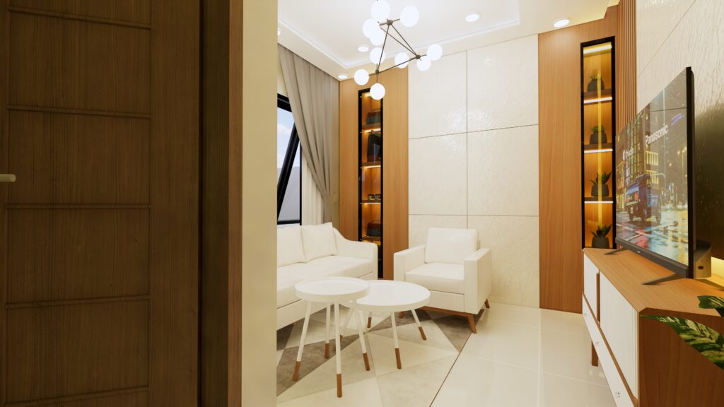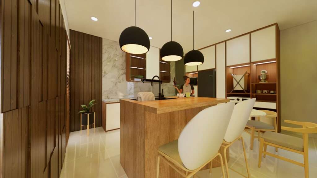 Desain interior ruang tamu,dapur, kamar tidur. menerapkan perpaduan konsep skandinavia dan minimalis