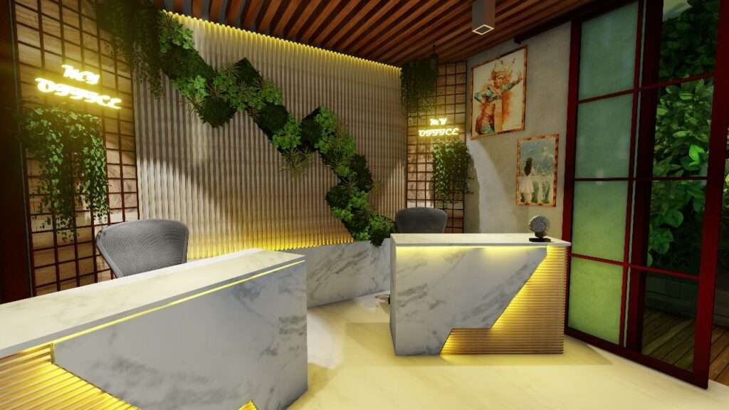 DESAIN INTERIOR KANTOR GAYA KONTEMPORER TROPIS
