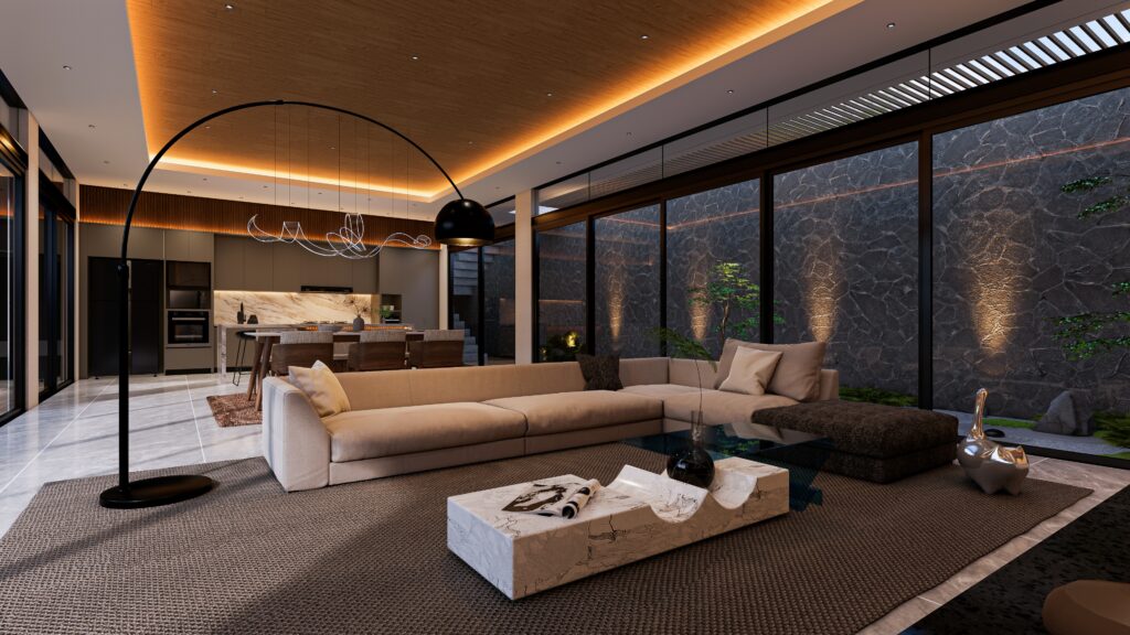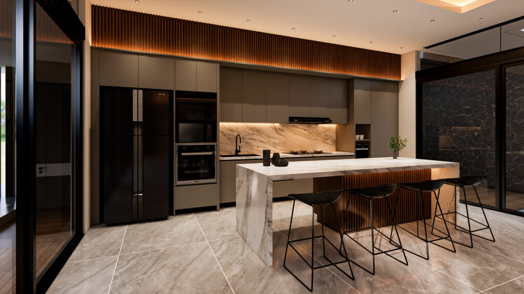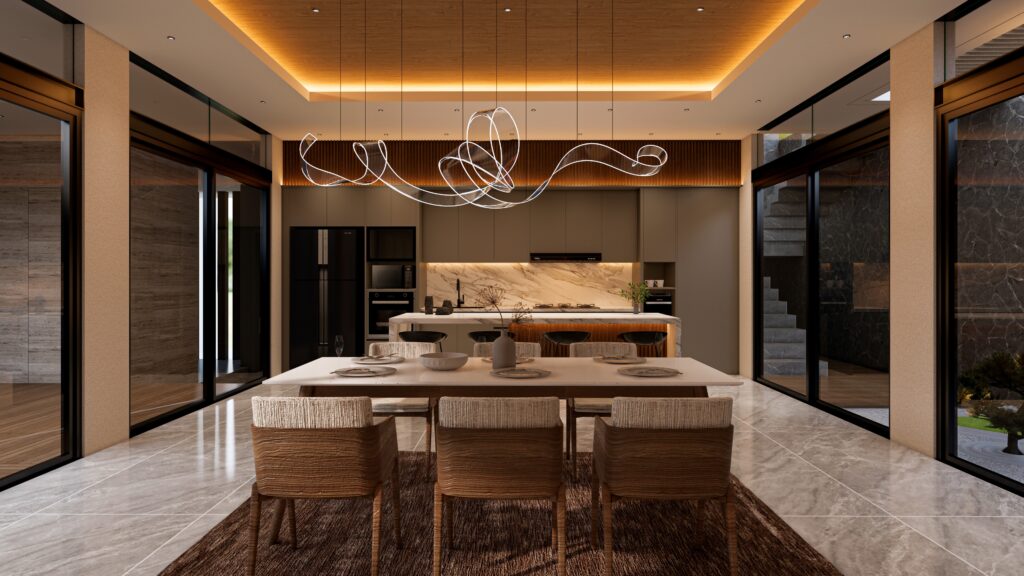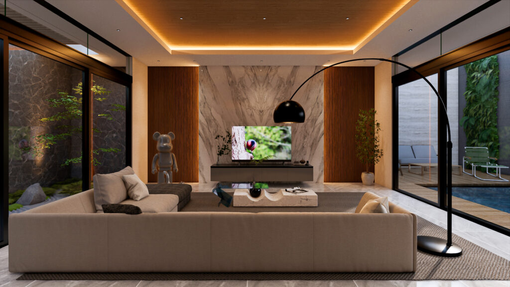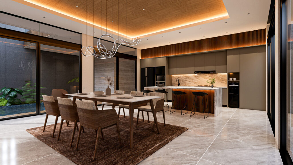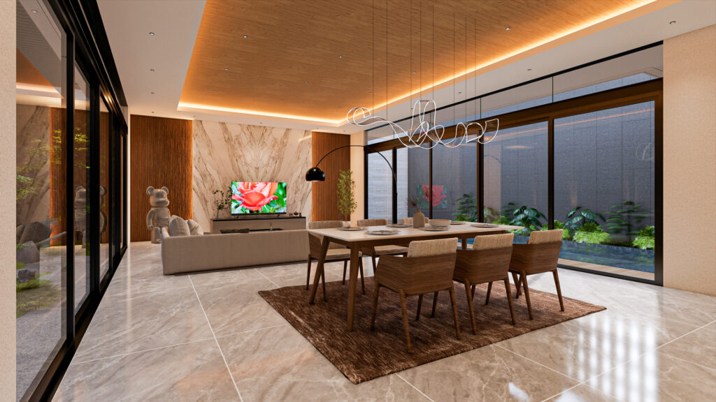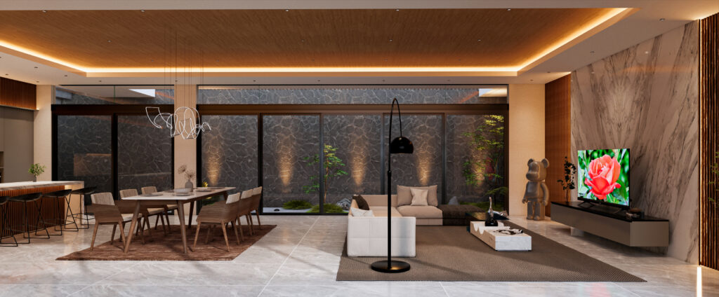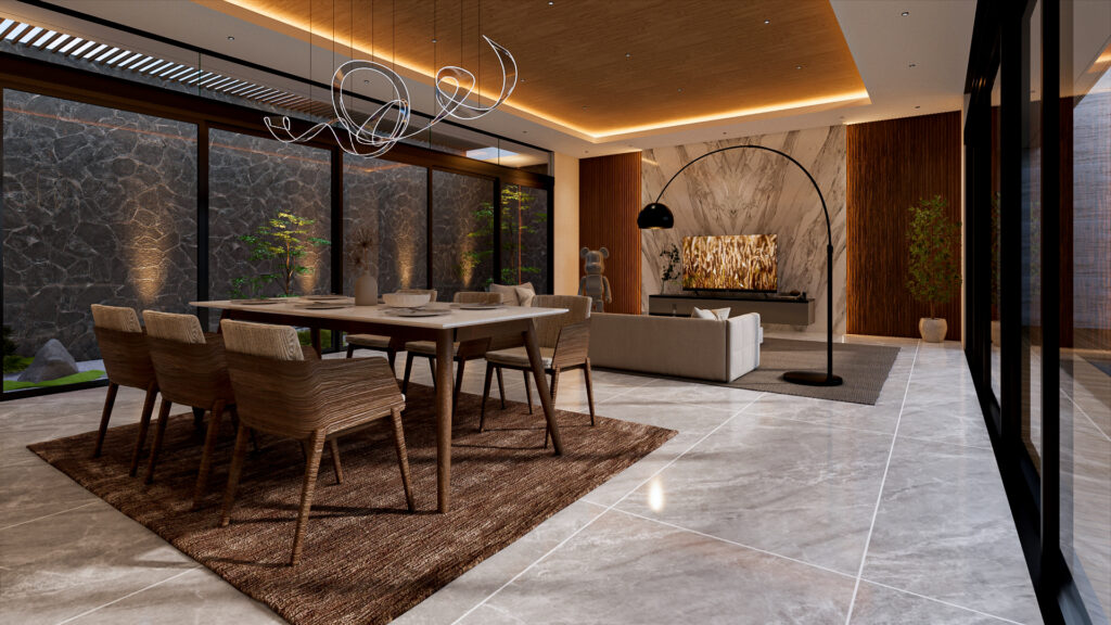 Hunian ini menekankan keseimbangan antara desain modern dan unsur alami dengan menghadirkan suasana alami seperti elemen kayu dan elemen hijau segar yang menenangkan, dan harmonis dengan lingkungan sekitar. Desain ini mencerminkan rumah yang dipenuhi elemen alam, baik dari segi material, pencahayaan, maupun lanskapnya.