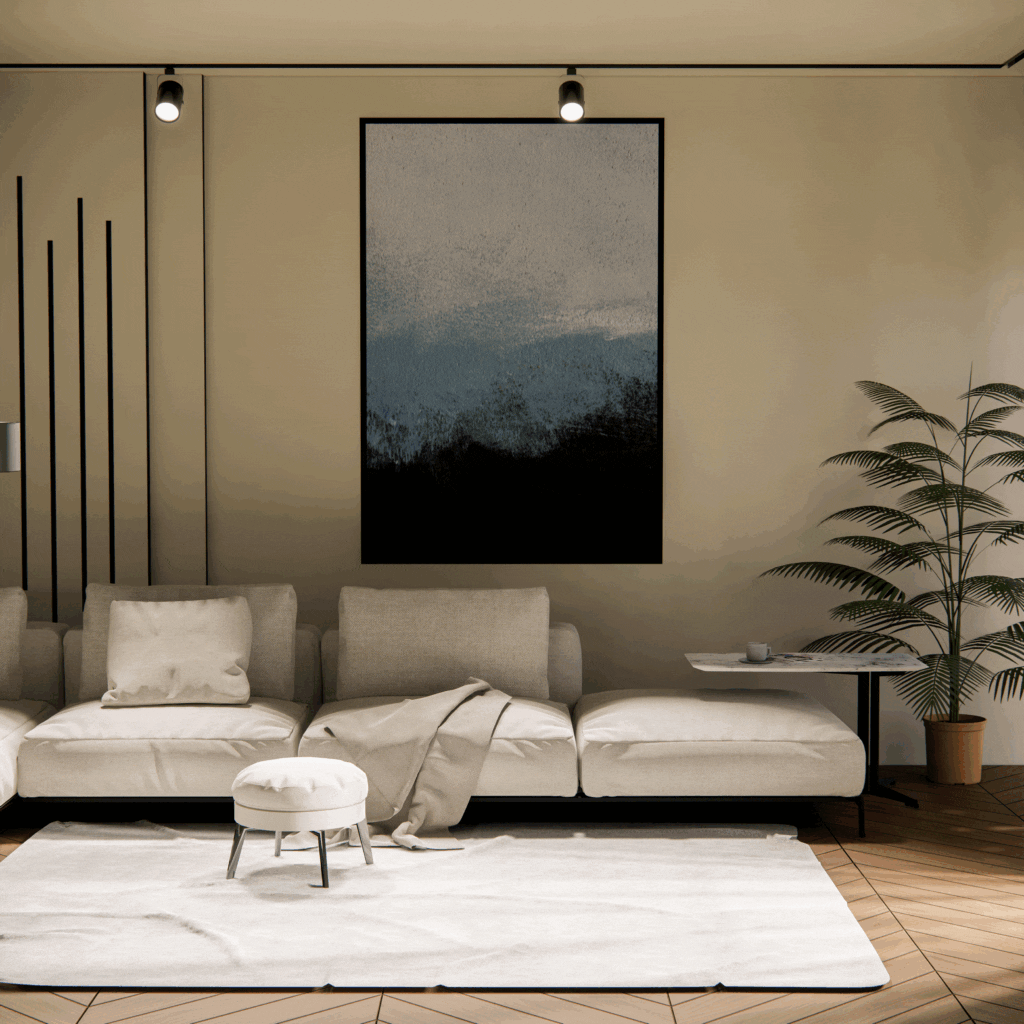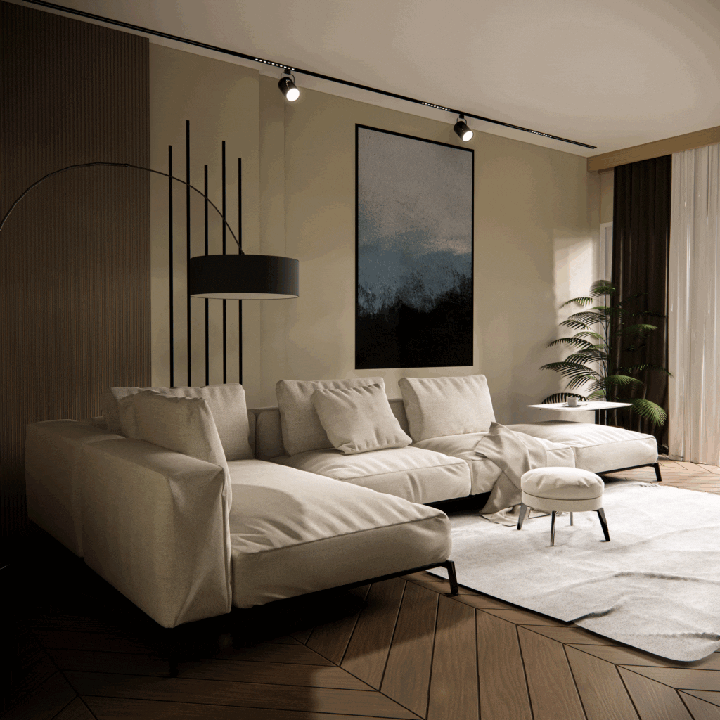 Desain Interior Livingroom Dengan ukuran 4m x 8m. Menerapkan gaya  Skandinavia yang mengusung konsep minimalis,dengan desain yang modern.
