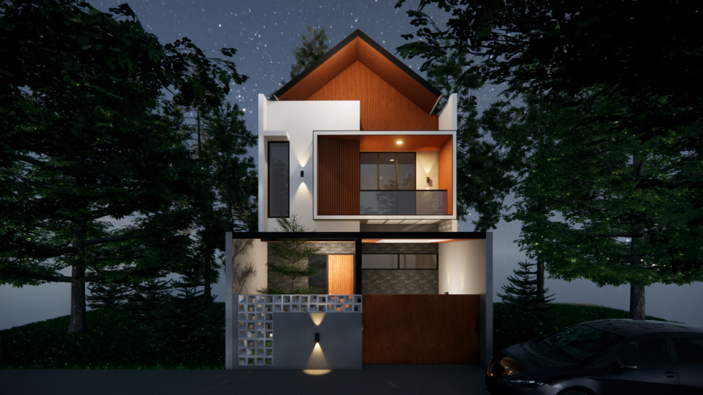 Desain Exterior Rumah 2 Lantai Konsep Industrial Minimalis