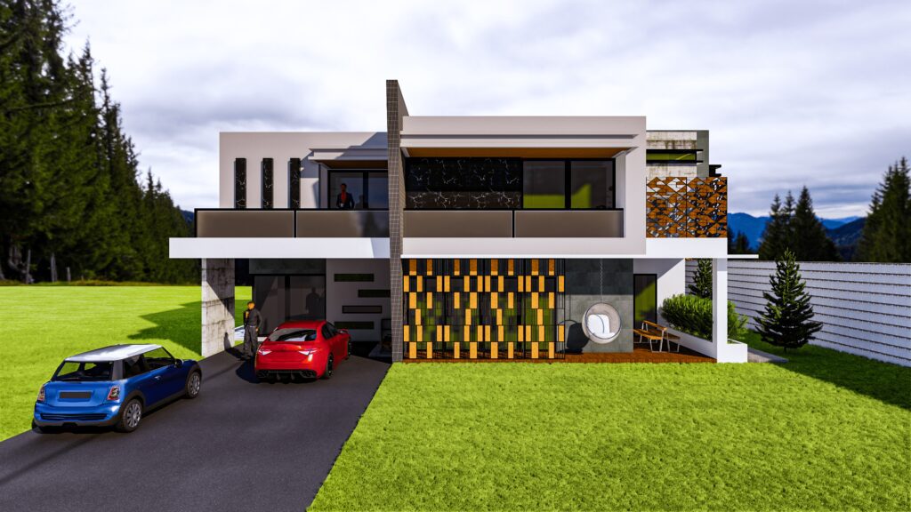 Modern Bungalow terletak di perbukitan. Menerapkan gaya desain minimalist modern.