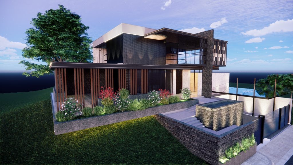 Desain Exterior Rumah 2 Lantai Konsep Industrial Minimalis