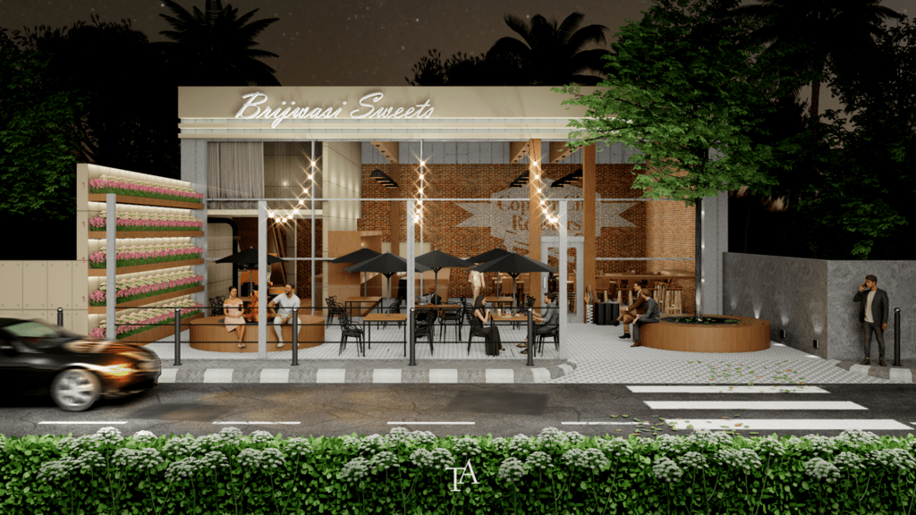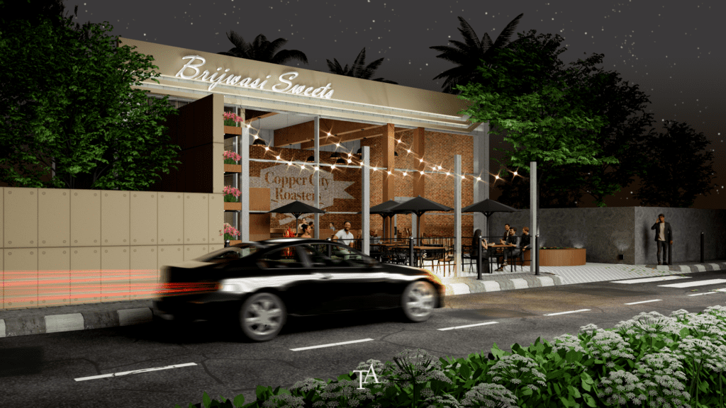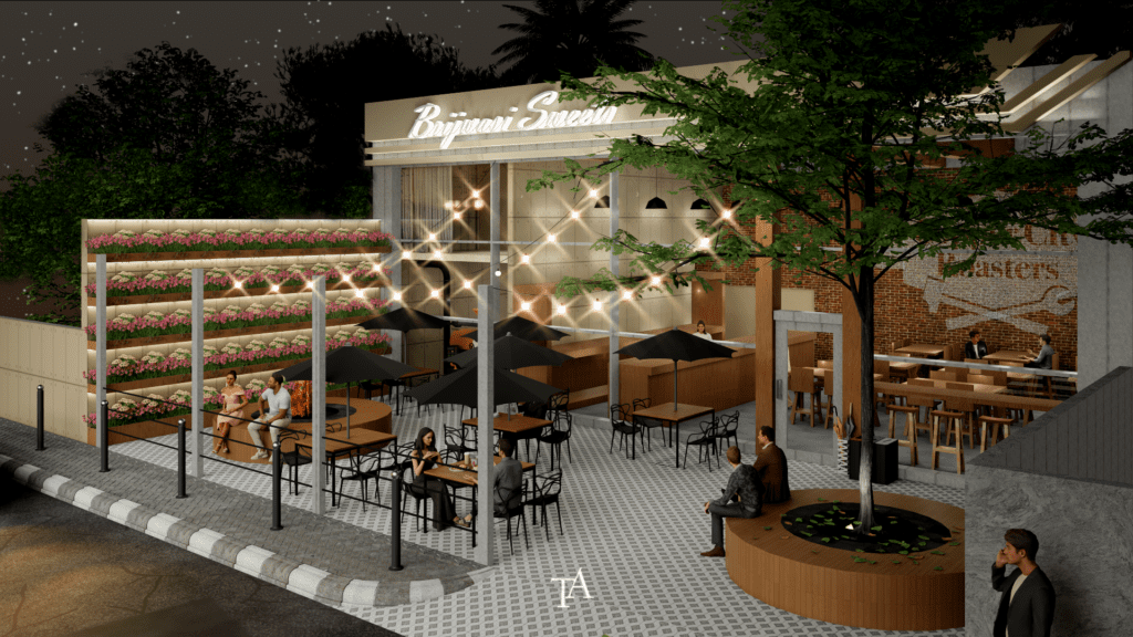 Coffee Shop Exterior Visualization with a Nighttime Ambience