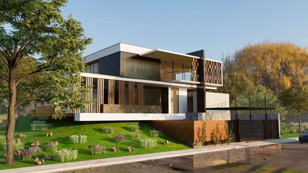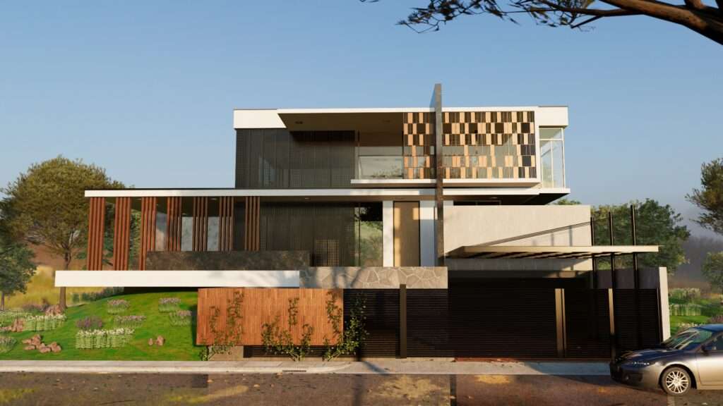 Desain Exterior Rumah 2 Lantai Konsep Industrial Minimalis