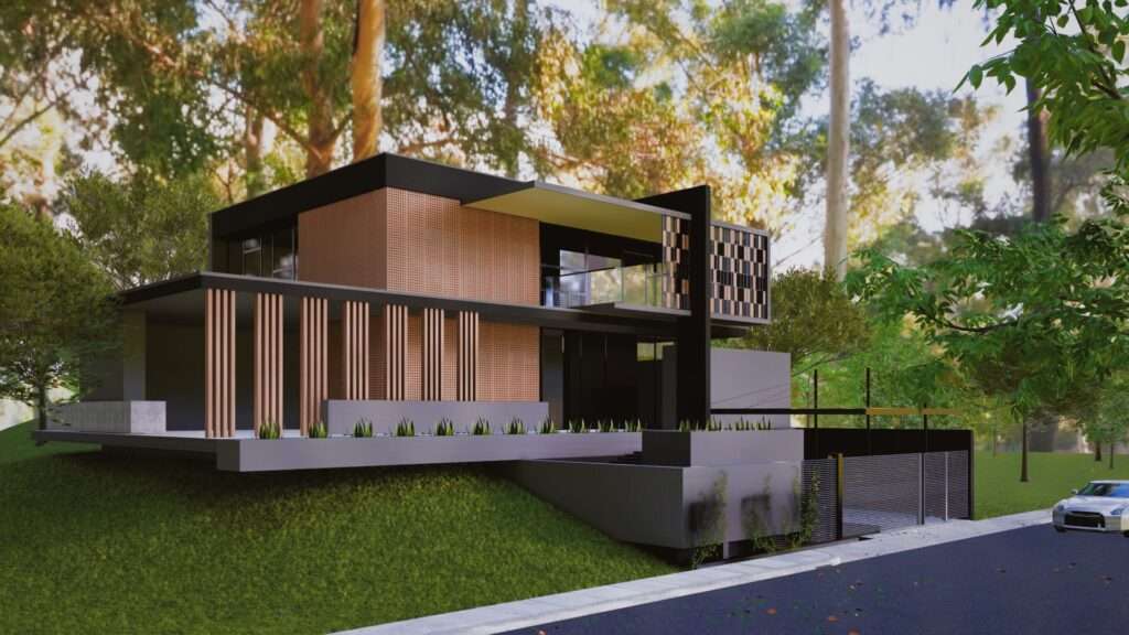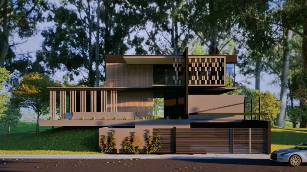 Eskterior rendering rumah 2 lantai
