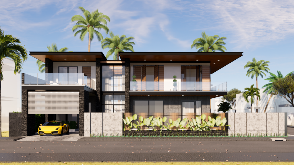 exterior rendering design dengan gaya residential fasad