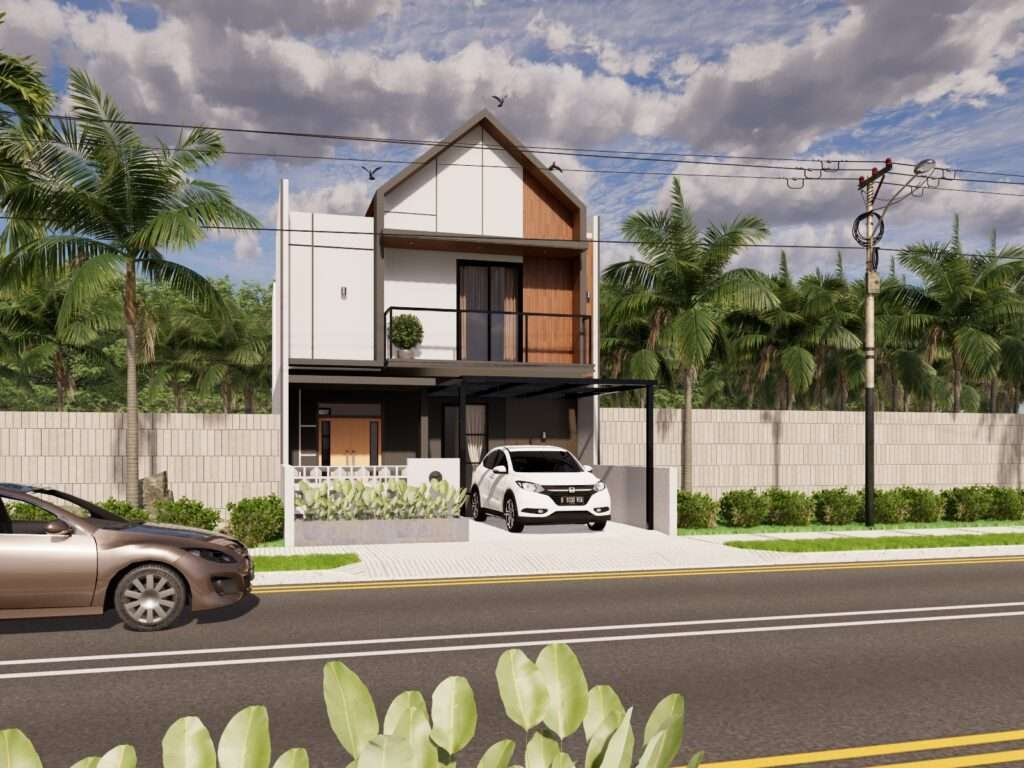 Fasad rumah Scandinavian 2 lantai adalah desain arsitektur yang mencerminkan gaya minimalis, fungsional, dan estetika alami yang khas dari wilayah Skandinavia. Fasad rumah ini sering menggunakan bahan-bahan seperti kayu alami, batu, dan logam dengan warna netral seperti putih, abu-abu, dan nuansa alam.