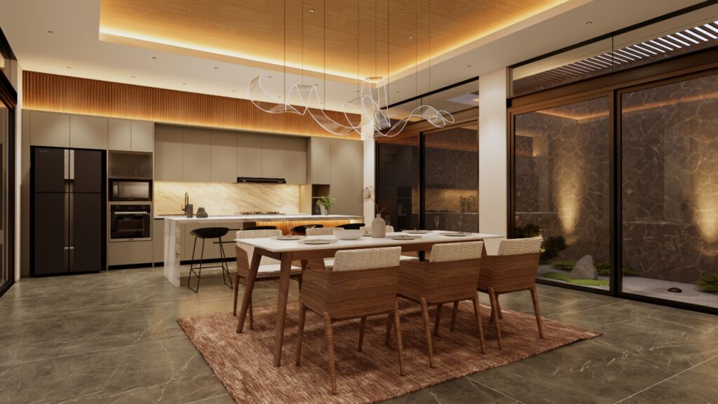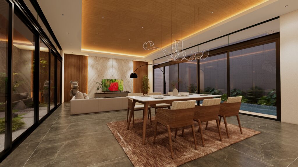 Aranya Living sebagai konsep desain interior menghadirkan perpaduan antara estetika modern dan nuansa tropis alami, menciptakan suasana ruang yang nyaman, sejuk, dan fungsional. Fokus pada material ramah lingkungan dan pemanfaatan cahaya alami juga mencerminkan gaya hidup berkelanjutan.
