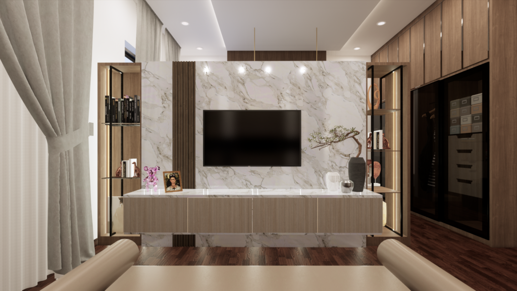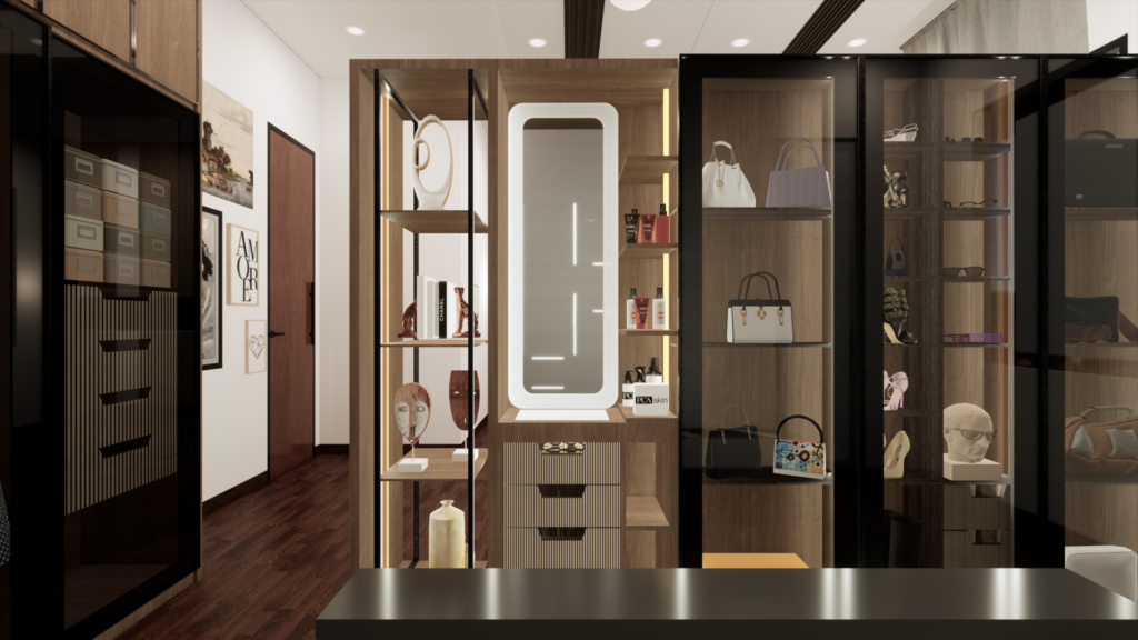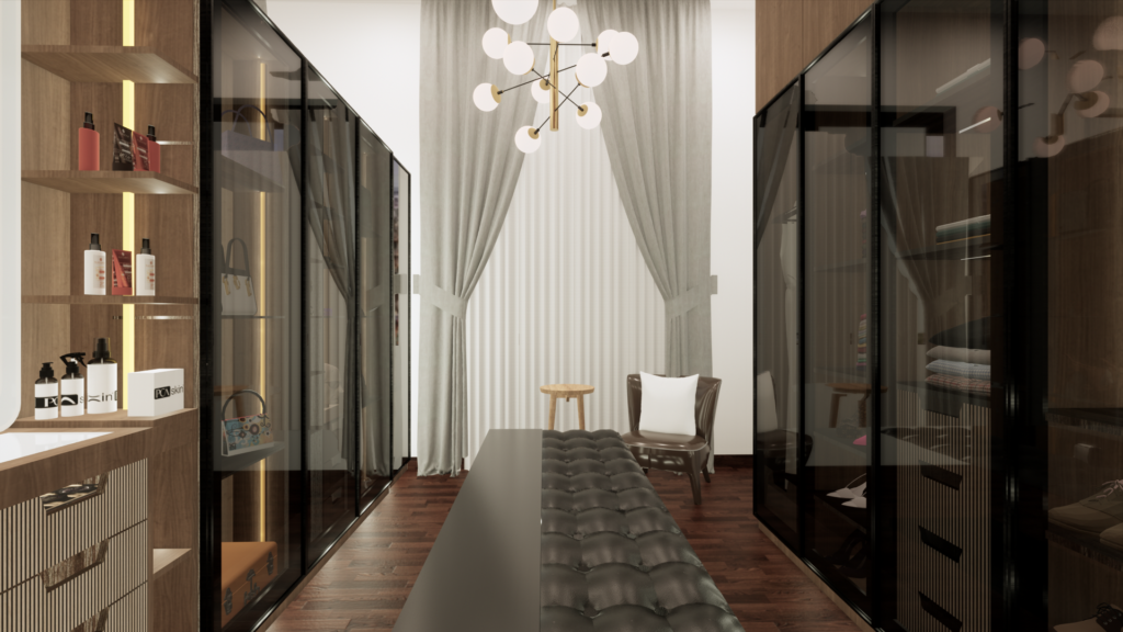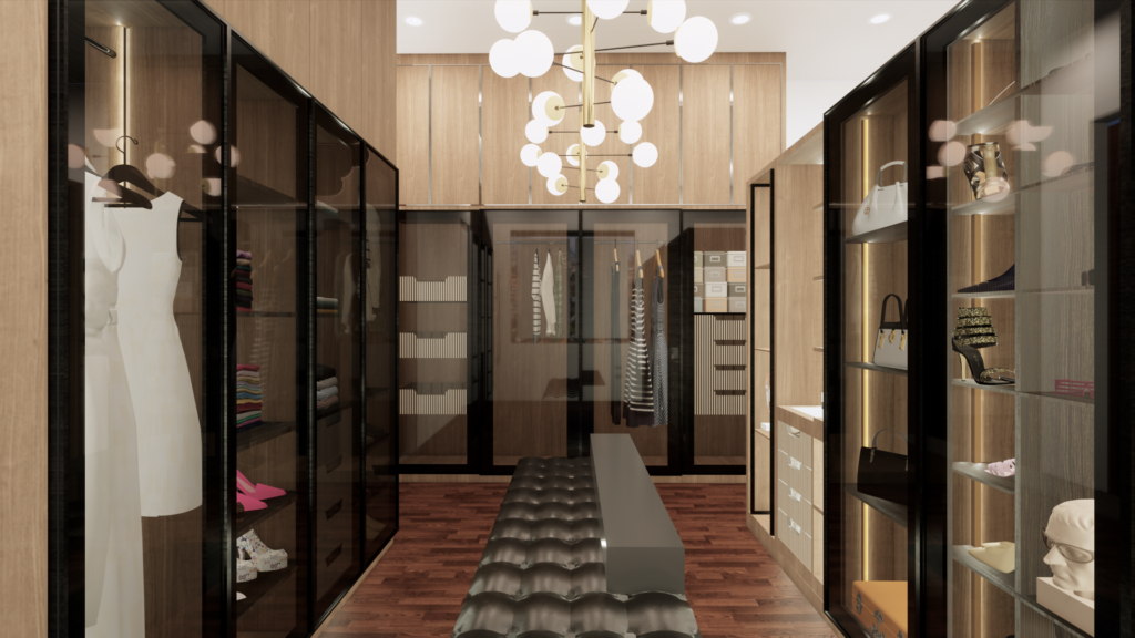 Modern Luxury Bedroom with walk-in closet render training. 3D Model by Arsisten Academy.