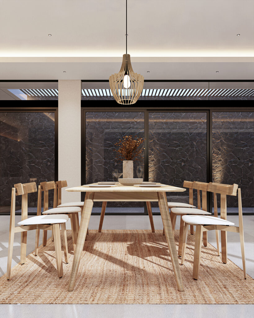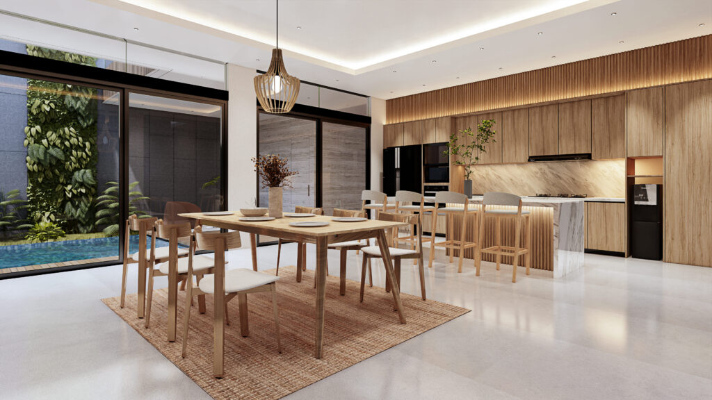 Neutral living adalah ruang living, dining, dan kitchen yang menerapkan gaya Japandi pada desainnya. Japandi merupakan pertemuan antara gaya Interior Jepang dan gaya Interior Skandinavian.