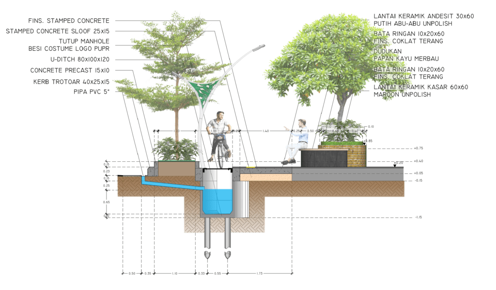 Perencanaan Desain Pedestrian yang akan menjadi sebuah jalan poros yang menghubungkan jalan Kantor Walikota Singkawang dan jalan utama kota. Perencanaan ini mempertimbangkan kebutuhan fungsional terhadap Open Public Space, Halte, Jalur Sepeda, dan Selasar Area Polres Singkawang, serta dengan menambahkan Street Furniture yang menerapkan konsep desain dari keunikan budaya kota singkawang, yaitu kolaborasi kebudayaan suku masyarakat mayoritas kota Singkawang yang terdiri dari masyarakat Cina, Dayak, dan Melayu (Cidayu).