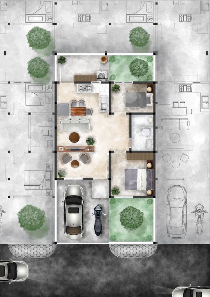 Pembelajaran render denah dengan 2 style yang berbeda yaitu texture dan watercolor