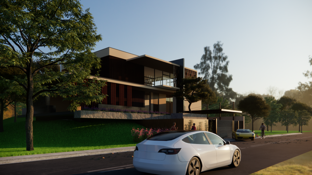 Render Eksterior dengan Bangunan berkonsep Kontemporer