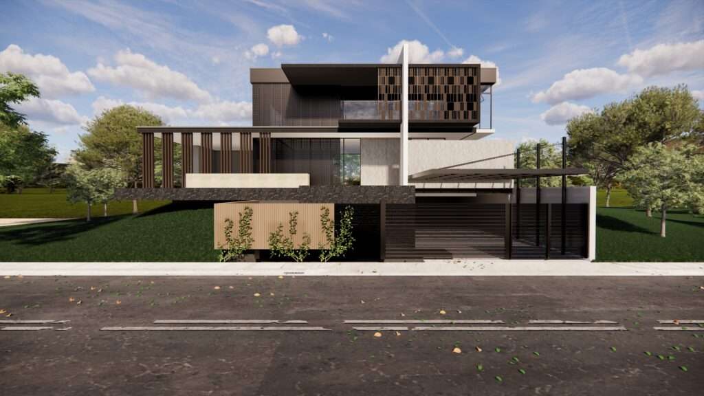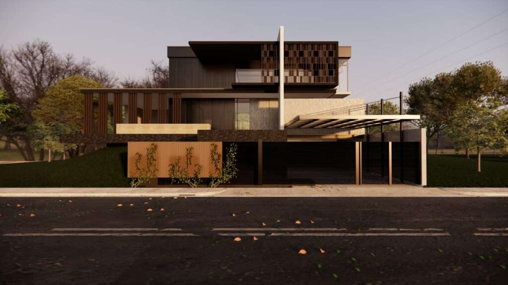 Desain Exterior Rumah 2 Lantai Konsep Industrial Minimalis