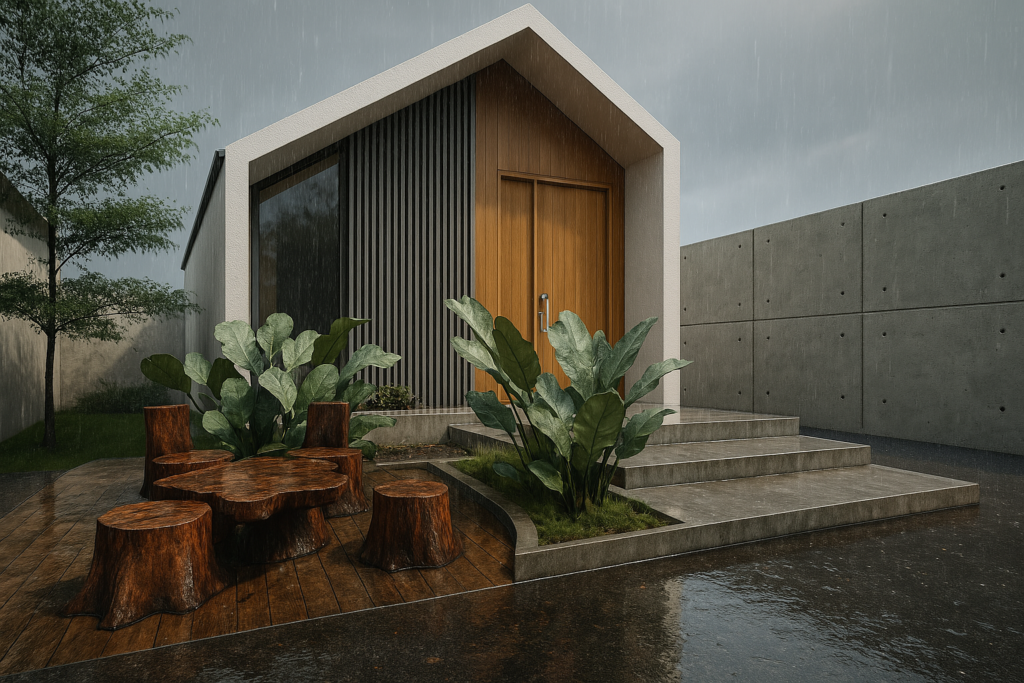 perpaduan antara konsep scadinavian dan alam yang tropis serta menggunakan bahan bangunan yang ramah akan lingkungan sekitar mencipatakan nuansa desain yang natural.