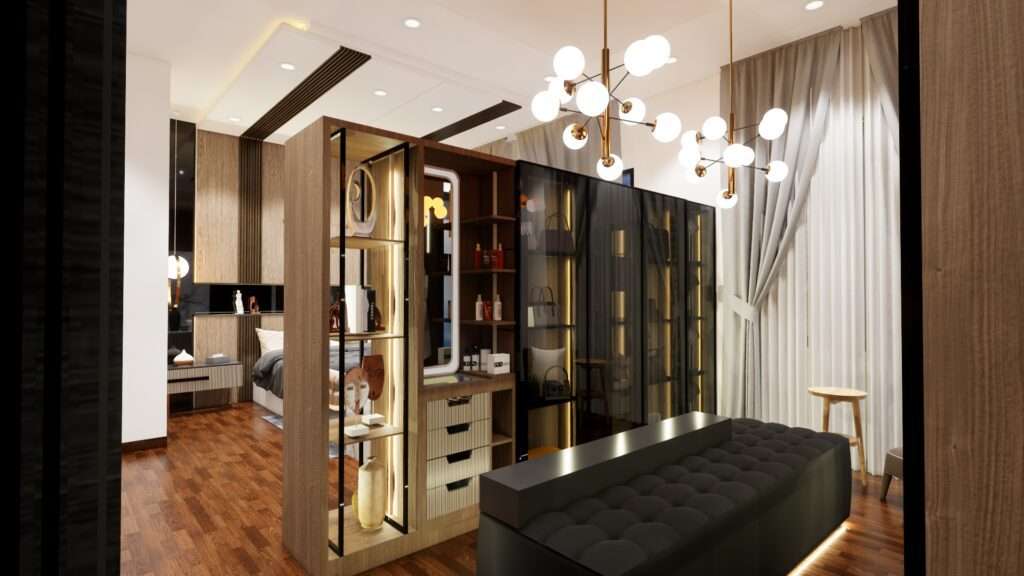 Hasil render interior ruang tidur modern luxury