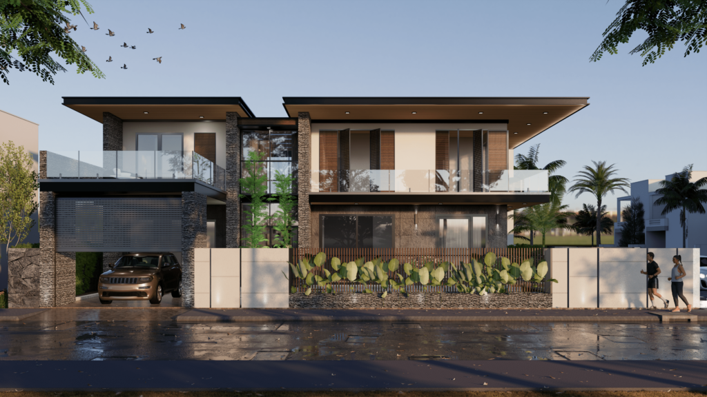 Desain Exterior Rumah 2 Lantai Konsep Industrial Minimalis