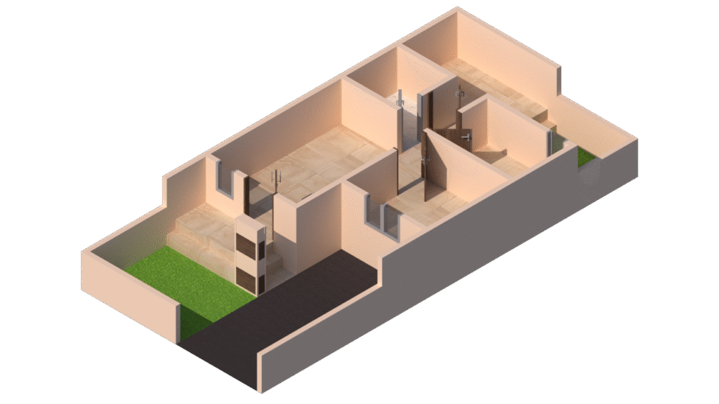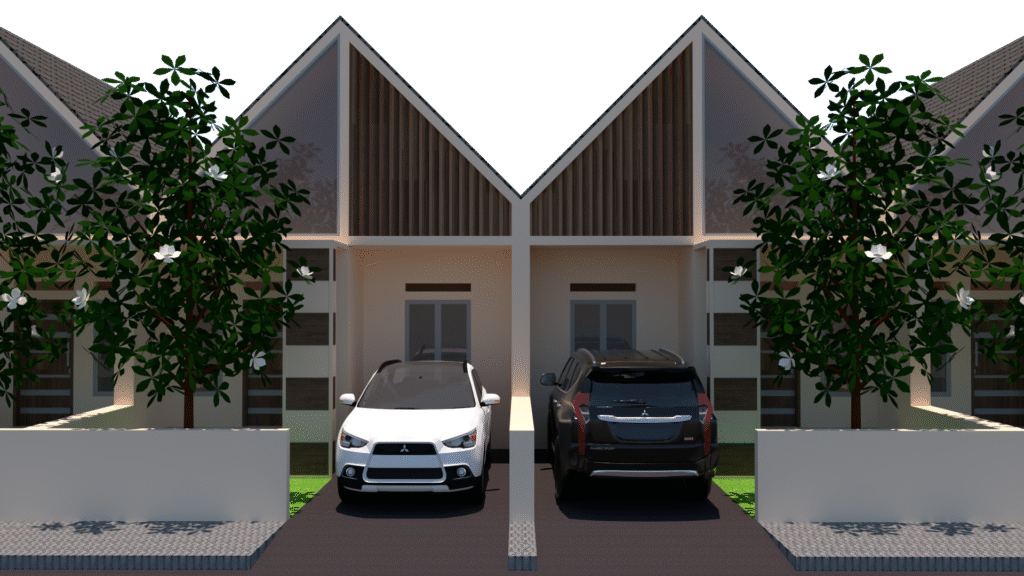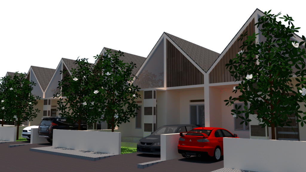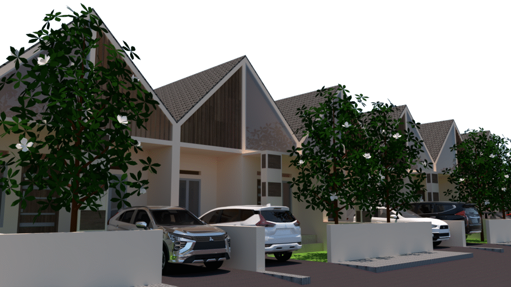 Konsep desain cluster perumahan dengan desain fasad skandinavia.