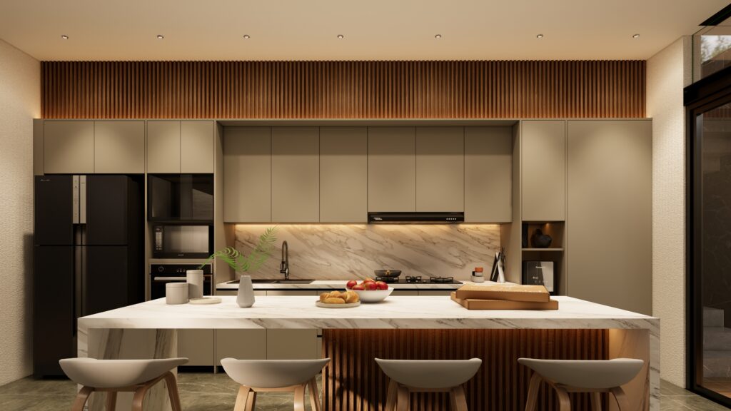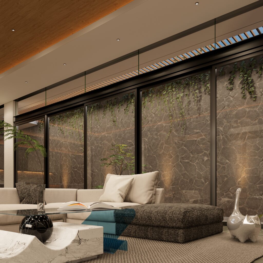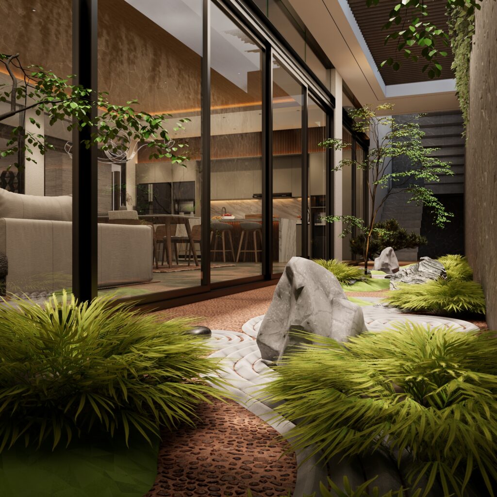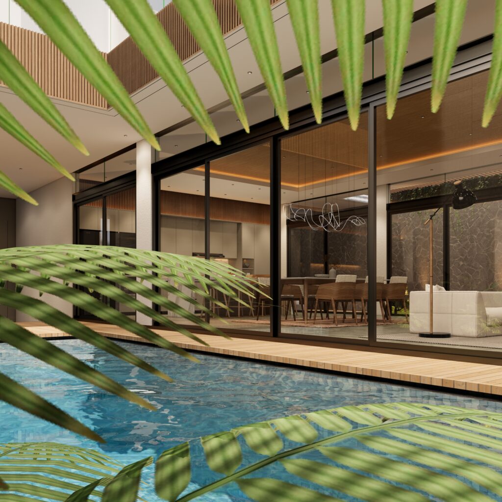 “Senandika” dalam Bahasa Indonesia berarti “ucapan atau pikiran yang ditujukan untuk diri sendiri“. Nama ini menggambarkan rumah sebagai tempat untuk pulang, merefleksi, dan menjadi versi terbaik dari diri sendiri. Dipadukan dengan konsep modern tropical minimalist, rumah yang ingin menghadirkan ketenangan, kehangatan tropis, dan desain yang sadar diri. Rumah yang bukan sekadar bangunan, tapi ruang untuk bertumbuh.
