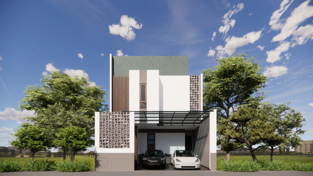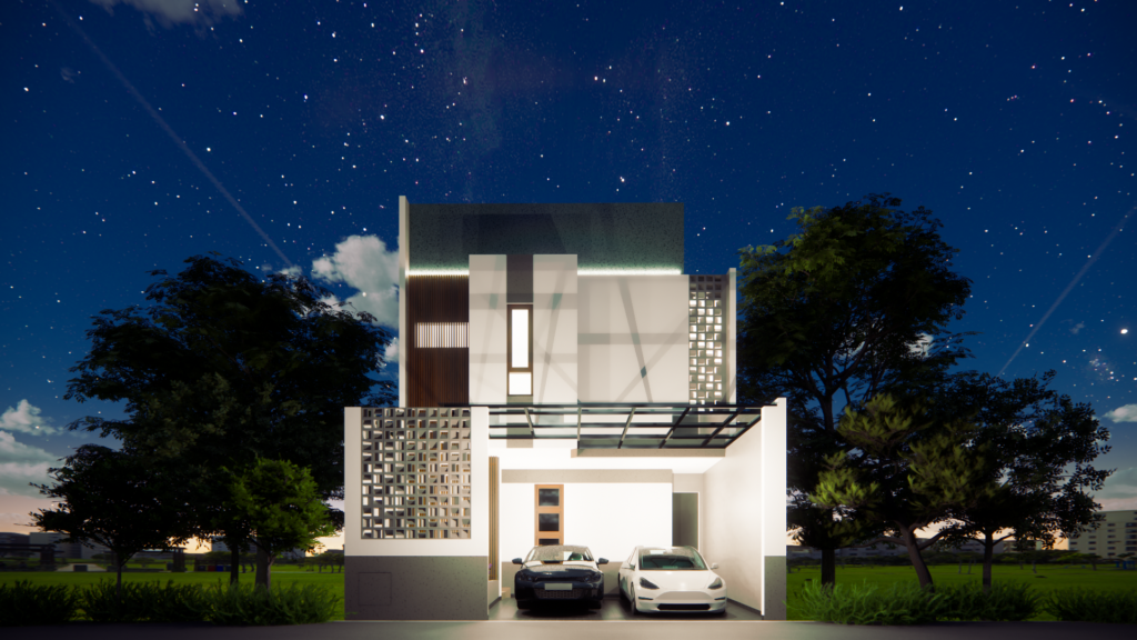 Desain Exterior Rumah 2 Lantai Konsep Industrial Minimalis
