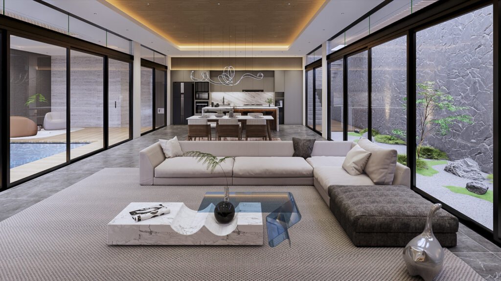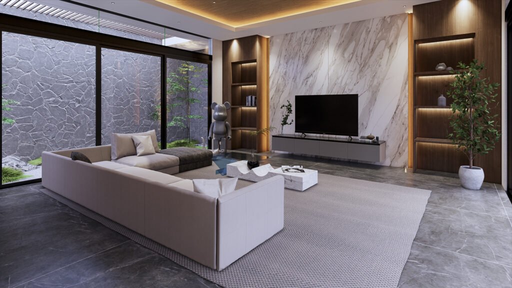 Interior dengan konsep modern yang memberikan kesan mewah dan elegan, tanpa meninggalkan nuansa alami.